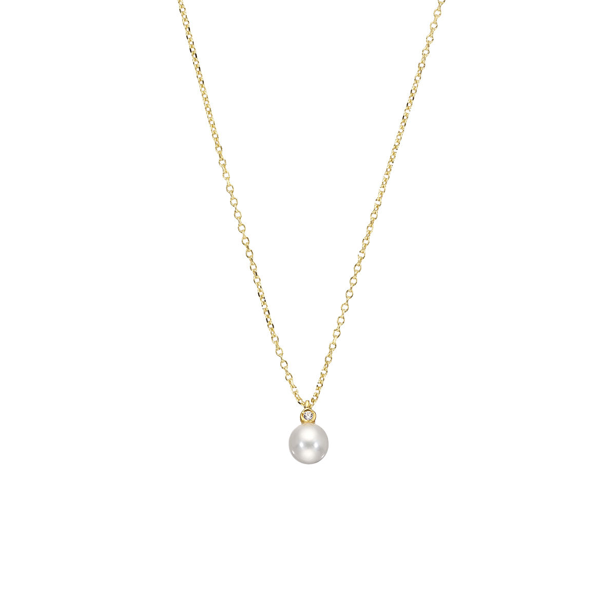 Μοτίφ σε κίτρινο χρυσό 14Κ με μαργαριτάρι και 0,16ct L.G.Diamond. Διάσταση μοτίφ 1,2*0,7cm ,με αλυσίδα σε κίτρινο χρυσό 14Κ μήκους 40-45cm