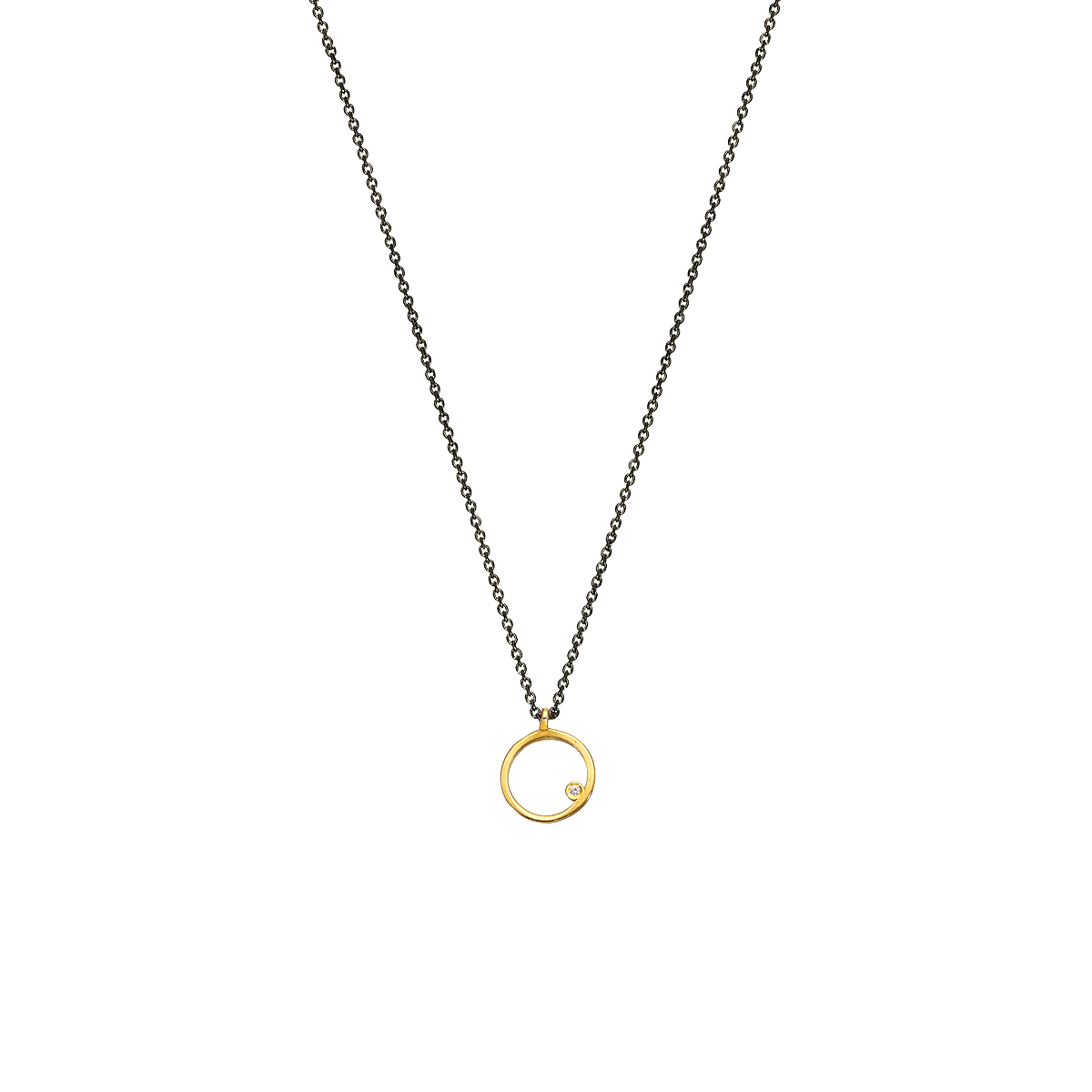 Μοτίφ σε κίτρινο χρυσό 14Κ με 0.004ct. L.G.Diamond . Διάσταση μοτίφ 1cm ,με αλυσίδα ασημένια 925 επιροδιωμένη μήκους 40-45