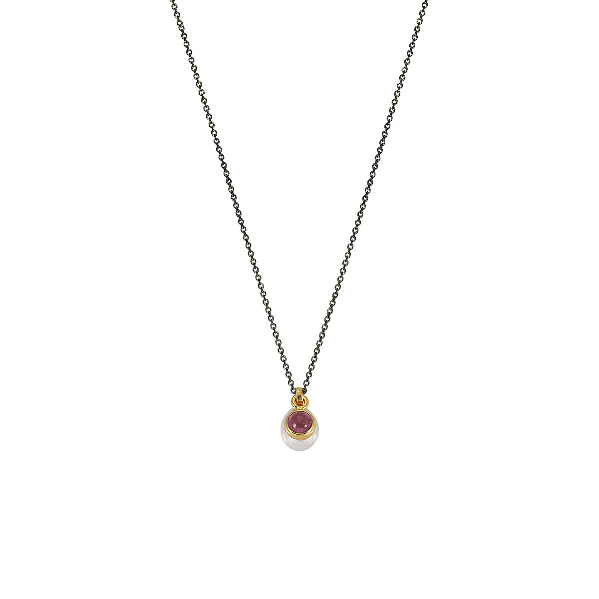 Μοτίφ σε κίτρινο χρυσό 14Κ με μαργαριτάρι και ροζ τουρμαλίνη . Διάσταση μοτίφ1,1*0,6cm ,με αλυσίδα ασημένια 925 επιροδιωμένη μήκους 40-45