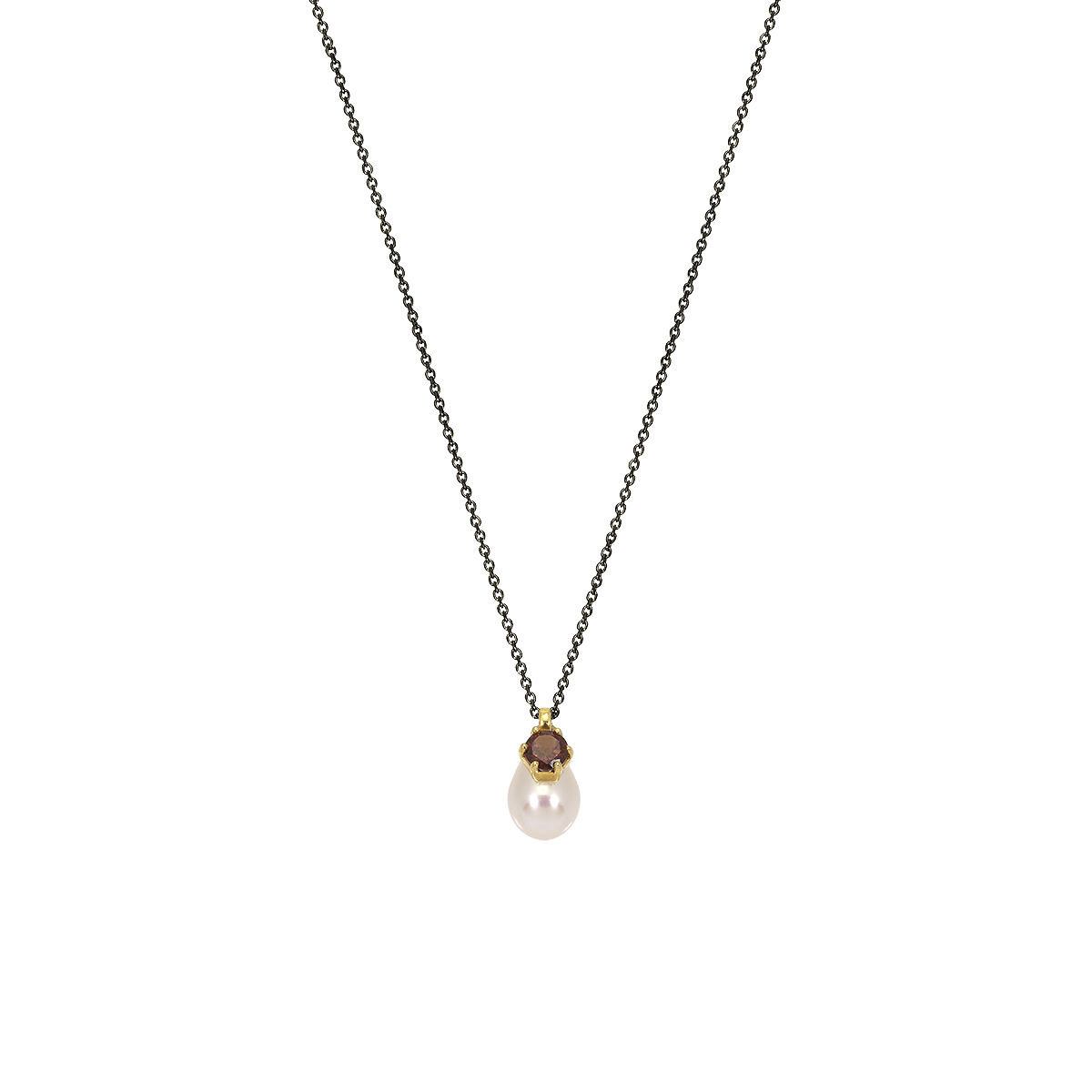 Μοτίφ σε κίτρινο χρυσό 14Κ με μαργαριτάρι και ροζ τουρμαλίνη . Διάσταση μοτίφ1,1*0,6cm ,με αλυσίδα ασημένια 925 επιροδιωμένη μήκους 40-45