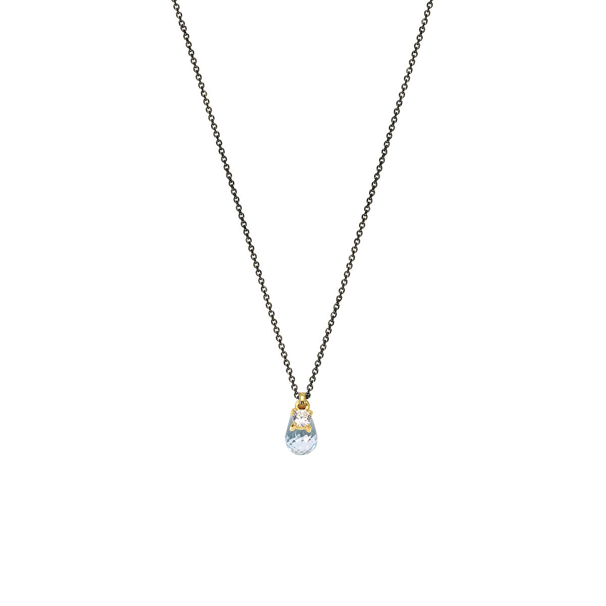 Μοτίφ σε κίτρινο χρυσό 14Κ με μπλέ τοπάζ και 0,095ct L.G.Diamond. Διάσταση μοτίφ1,1*0,5cm ,με αλυσίδα ασημένια 925 επιροδιωμένη μήκους 40-45