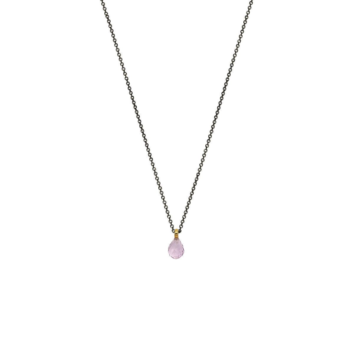 Μοτίφ σε κίτρινο χρυσό 14Κ με αμέθυστο. Διάσταση μοτίφ 1*0,5cm ,με αλυσίδα ασημένια 925 επιροδιωμένη μήκους 40-45