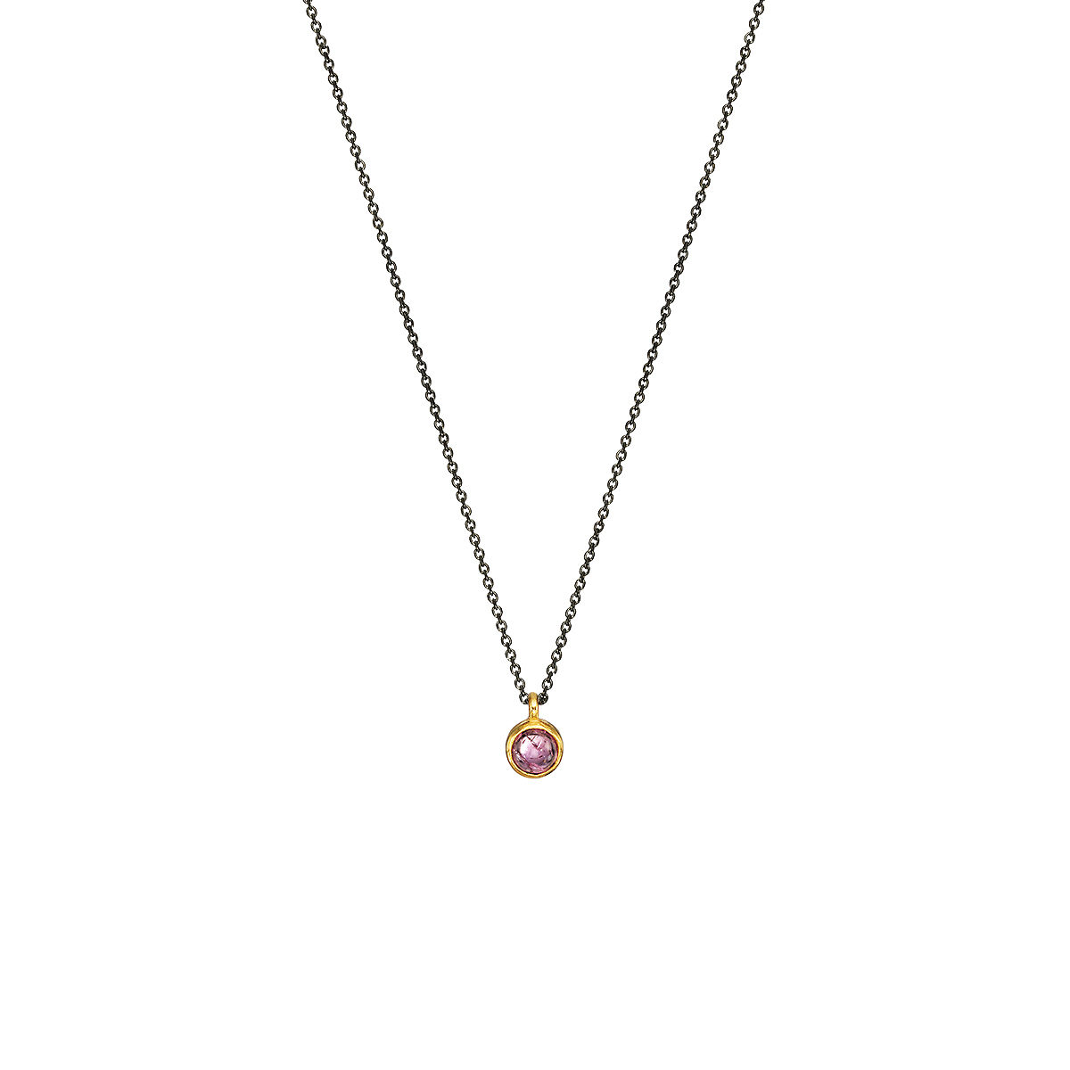 Μοτίφ σε κίτρινο χρυσό 14Κ και τουρμαλίνη ρόζ. Διάσταση μοτίφ1,2*1cm ,με αλυσίδα ασημένια 925 επιροδιωμένη μήκους 40-45