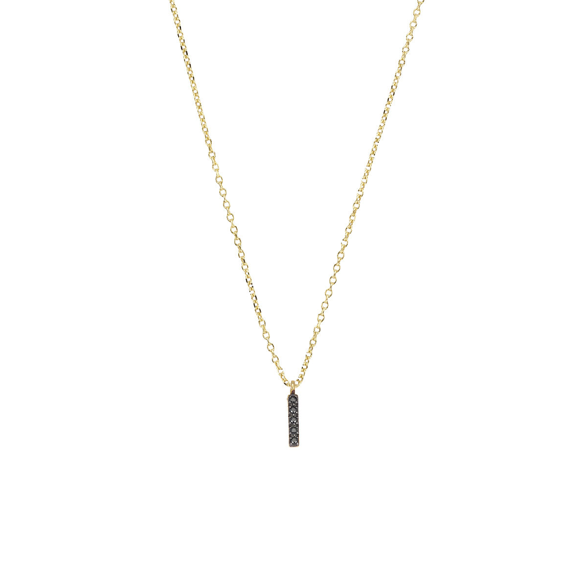 Μοτίφ σε κίτρινο χρυσό 14Κ με 0,045ct black Diamond. Διάσταση μοτίφ 1*0,2cm ,με αλυσίδα σε κίτρινο χρυσό 14Κ μήκους 40-45cm