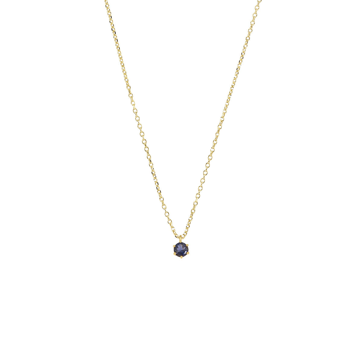 Μοτίφ σε κίτρινο χρυσό 14Κ με ιολίτη. Διάσταση μοτίφ 0,4cm ,με αλυσίδα σε κίτρινο χρυσό 14Κ μήκους 40-45cm