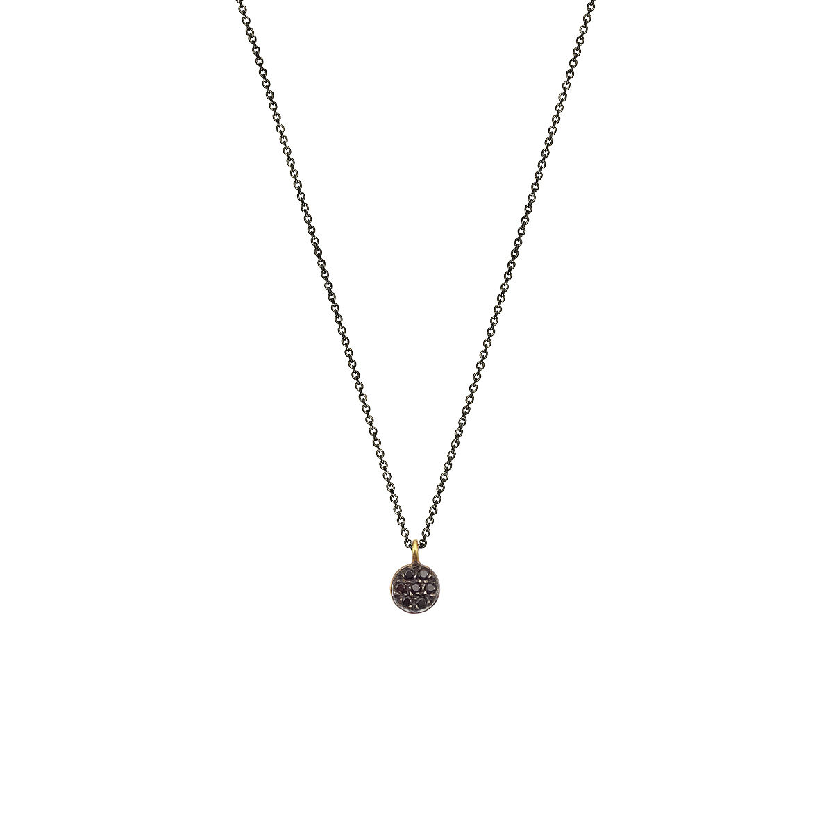 Μοτίφ σε κίτρινο χρυσό 14Κ με 0.063ct black diamond. Διάσταση μοτίφ 0,6cm ,με αλυσίδα ασημένια 925 επιροδιωμένη μήκους 40-45