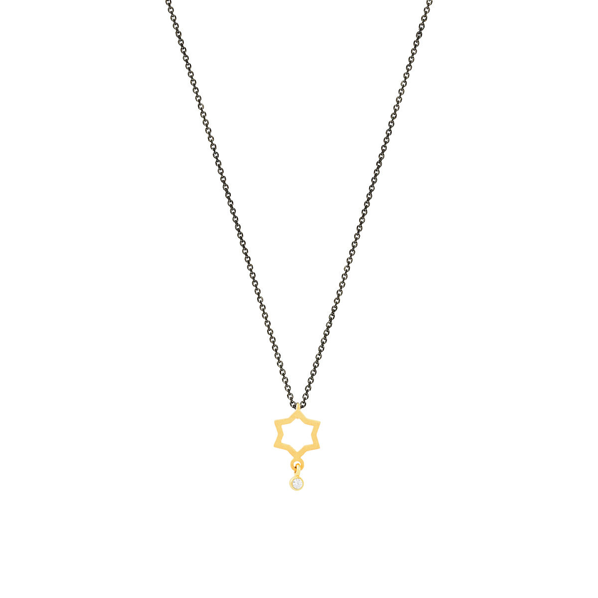 Μοτίφ σε κίτρινο χρυσό 14Κ με 0,016ct L.G.Diamond. Διάσταση μοτίφ 1.4*0.7cm ,με αλυσίδα ασημένια 925 επιροδιωμένη μήκους 40-45