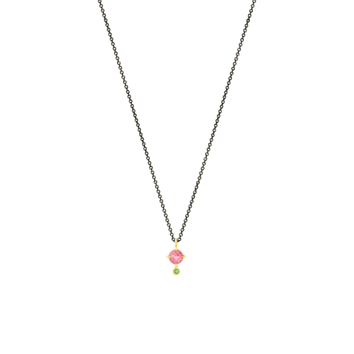Μοτίφ σε κίτρινο χρυσό 14Κ με tourmaline-tsavorite. Διάσταση μοτίφ 1*0.5cm ,με αλυσίδα ασημένια 925 επιροδιωμένη μήκους 40-45