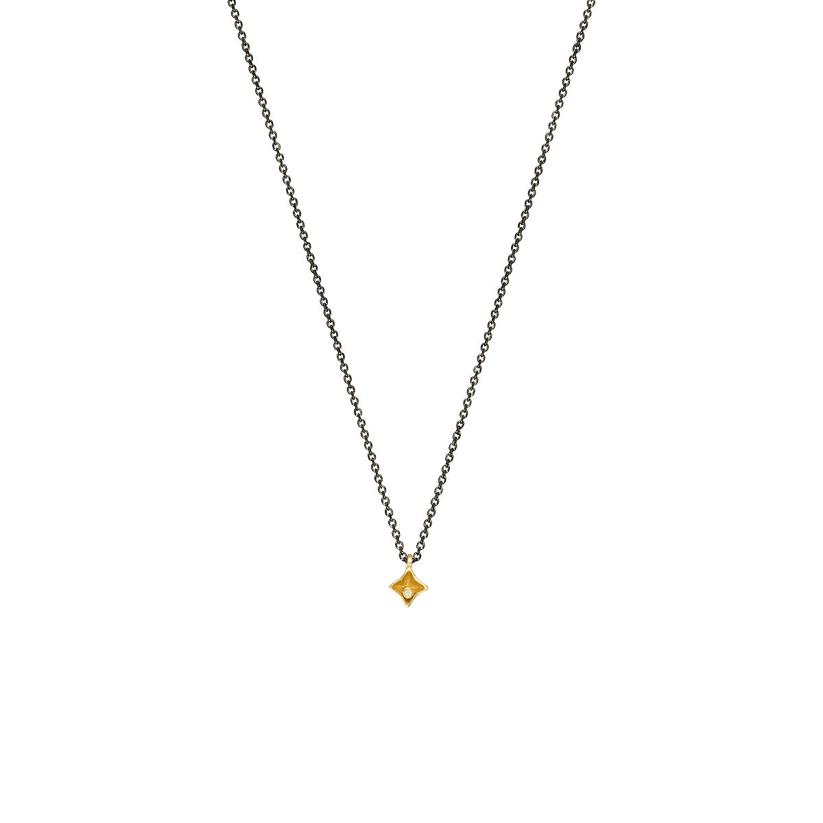 Μοτίφ σε κίτρινο χρυσό 14Κ με 0,004ct L.G.Diamond. Διάσταση μοτίφ 0.9*0.6cm ,με αλυσίδα ασημένια 925 επιροδιωμένη μήκους 40-45