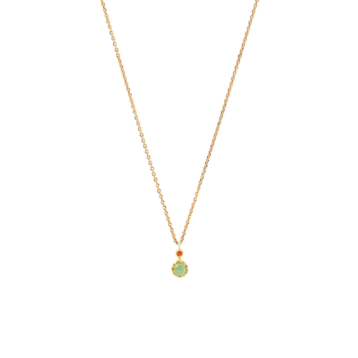 Μοτίφ σε κίτρινο χρυσό 14Κ με tourmalin-granat. Διάσταση μοτίφ 1*0.5cm ,με αλυσίδα σε κίτρινο χρυσό 14Κ μήκους 40-45cm