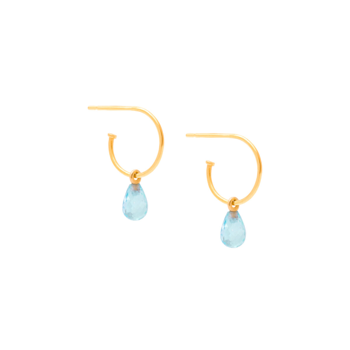 Σκουλαρίκια σε κίτρινο χρυσό 14Κ με blue topaz. Διαμετρος 1.2cm, μήκος 2,2cm