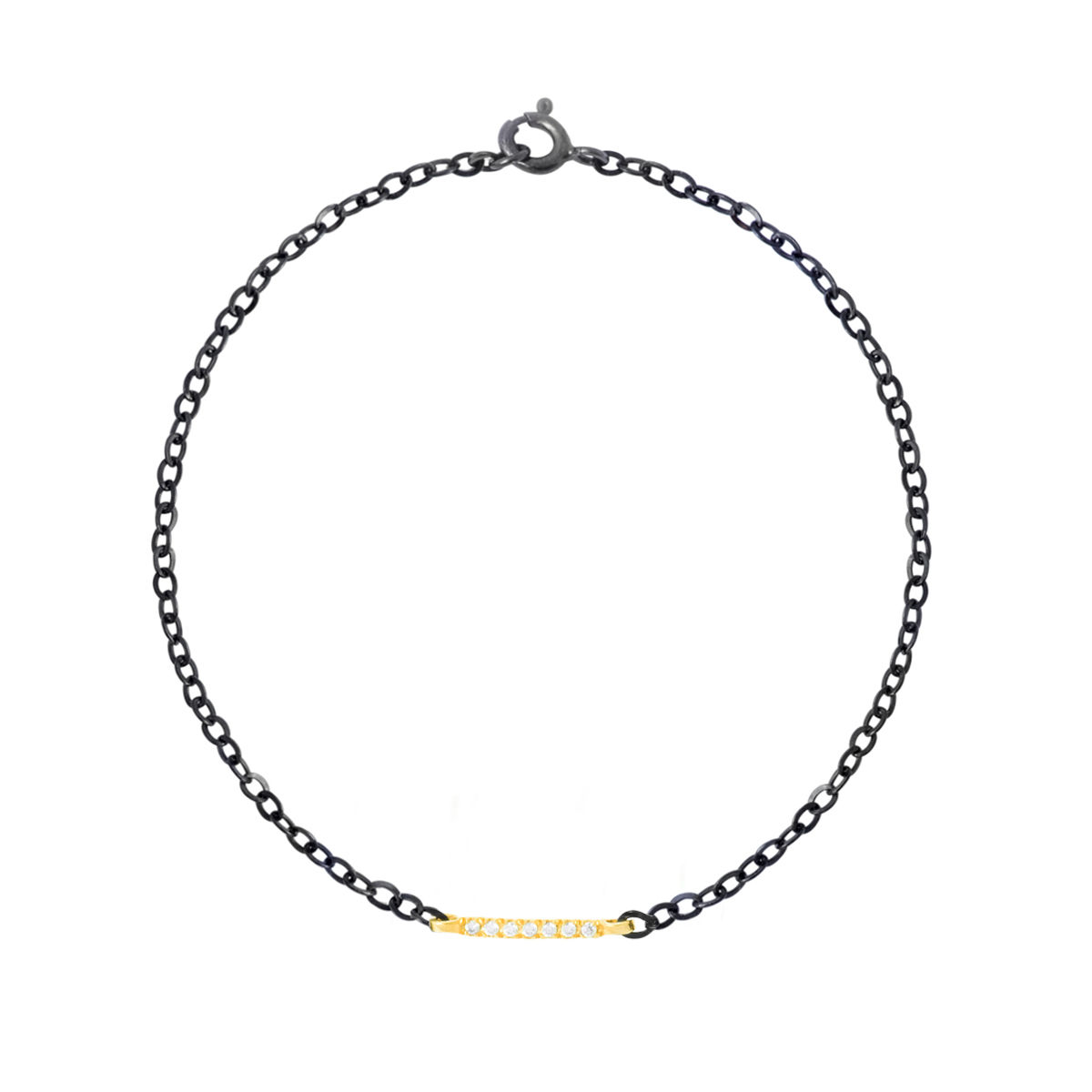 Βραχιόλι με μοτίφ σε κίτρινο χρυσό 14Κ με 0.028ct L.G.Diamond. Διάσταση μοτίφ 0,1*1,4cm ,με αλυσίδα ασημένια 925 επιροδιωμένη.