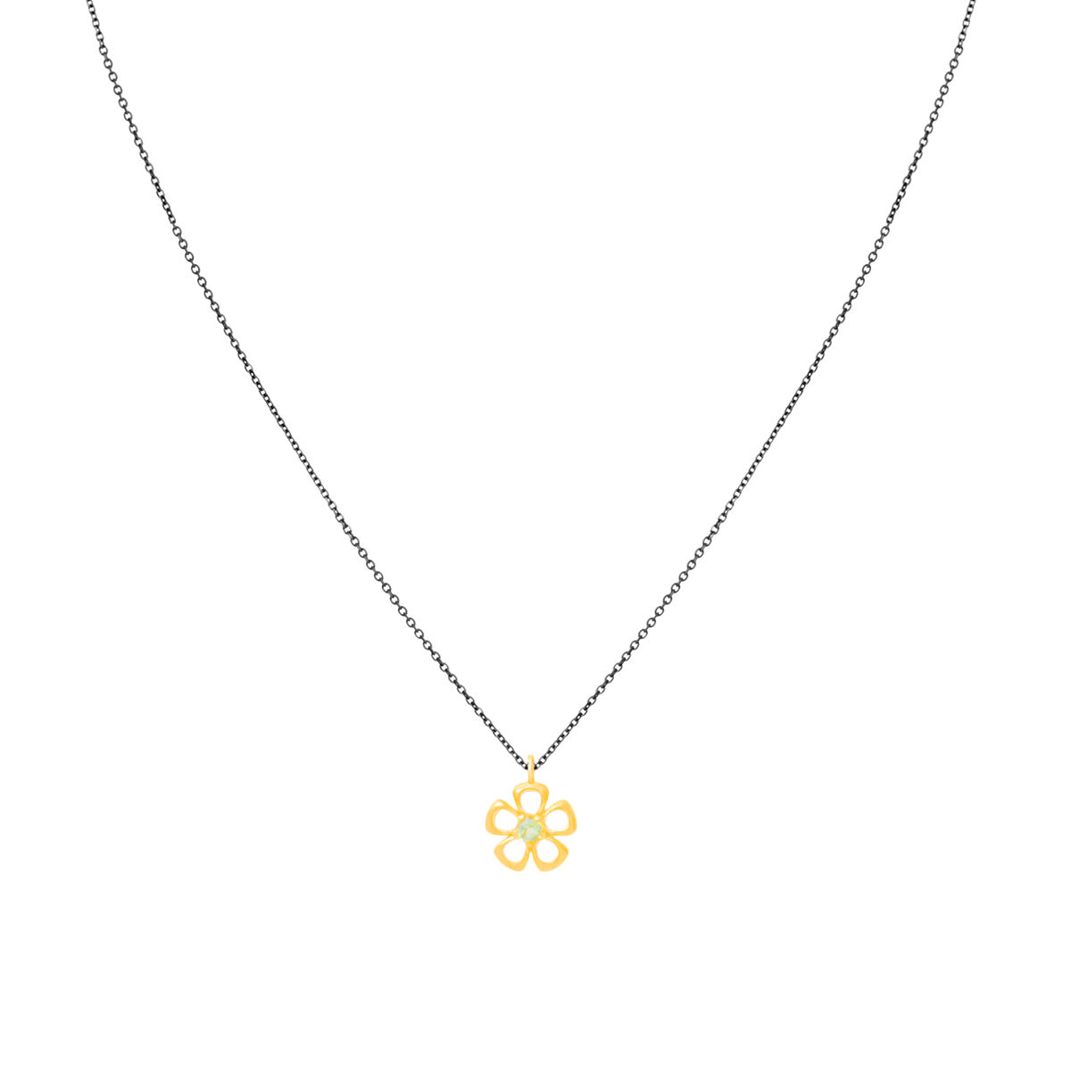 Μοτίφ σε κίτρινο χρυσό 14Κ με περιδοτο και αλυσίδα ασημένια 925 επιροδιωμένη μήκους 40-45