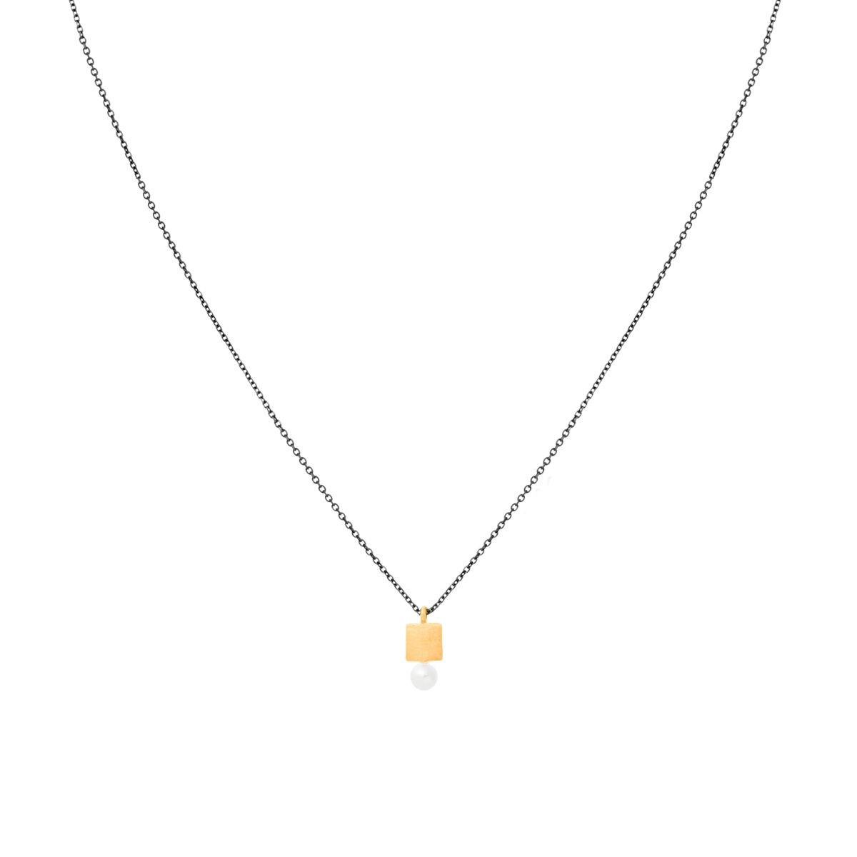 Μοτίφ σε κίτρινο χρυσό 14Κ με μαργαριτάρι. Διάσταση μοτίφ 0,5* 0,5cm ,με αλυσίδα ασημένια 925 επιροδιωμένη μήκους 40-45