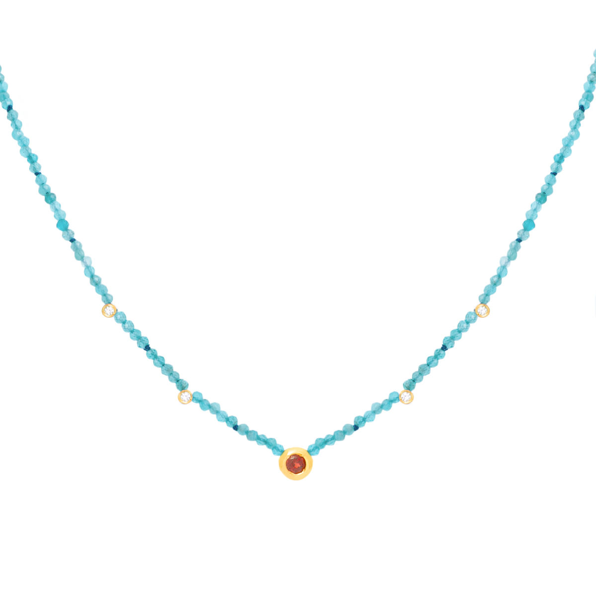Μοτίφ σε κίτρινο χρυσό 14Κ με γρανάδα, 0.064ct L.G.Diamond και ορυκτές μήκους 42cm