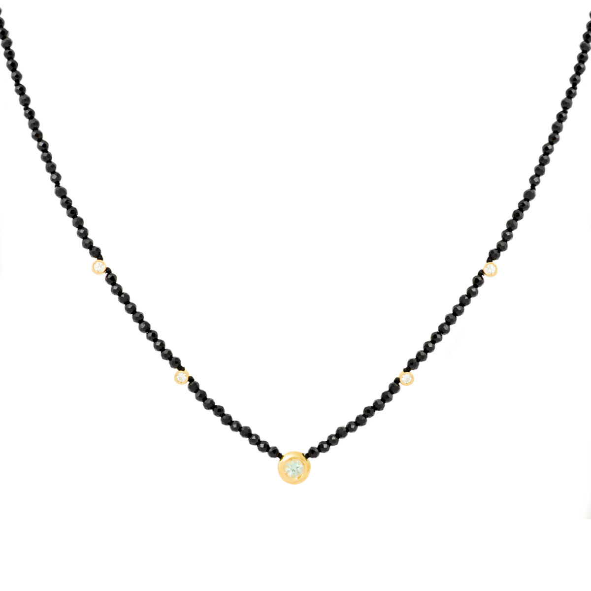 Μοτίφ σε κίτρινο χρυσό 14Κ με blue topaz, 0.064ct L.G.Diamond και ορυκτές μήκους 42cm