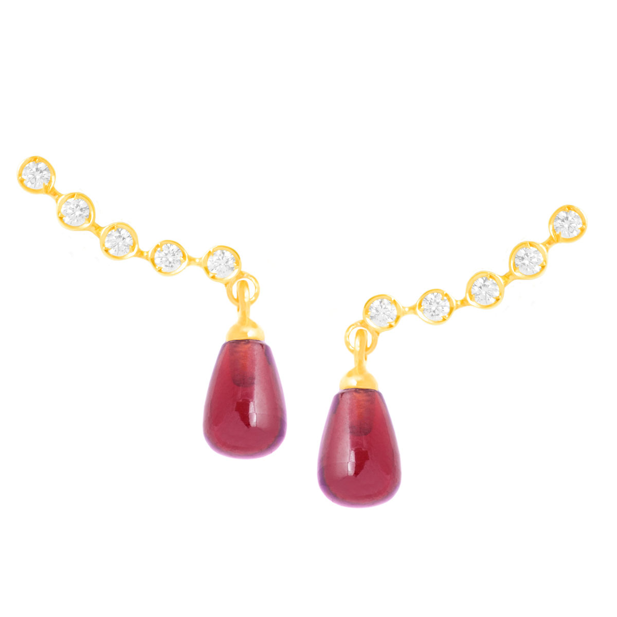 Σκουλαρίκια σε κίτρινο χρυσό 14Κ με γραναδα και 0.16ct L.G.Diamond. Διαστάσεις 2,5*0,2cm.