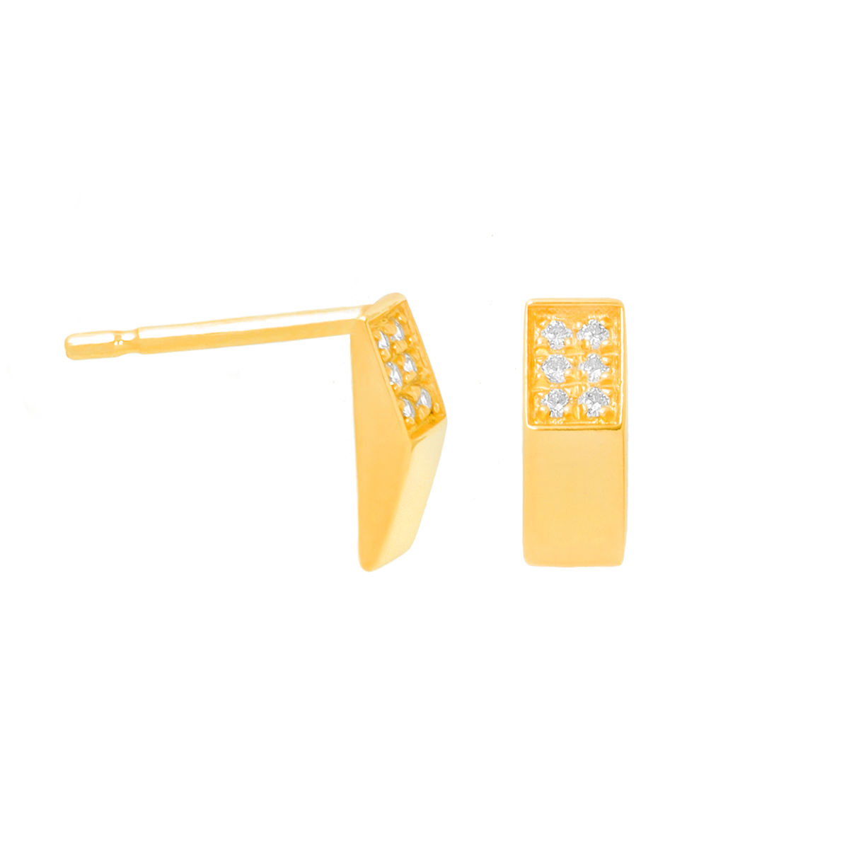 Σκουλαρίκια σε κίτρινο χρυσό 14Κ με 0.048ct L.G.Diamond. Διαστάσεις 0,9*0,3cm.