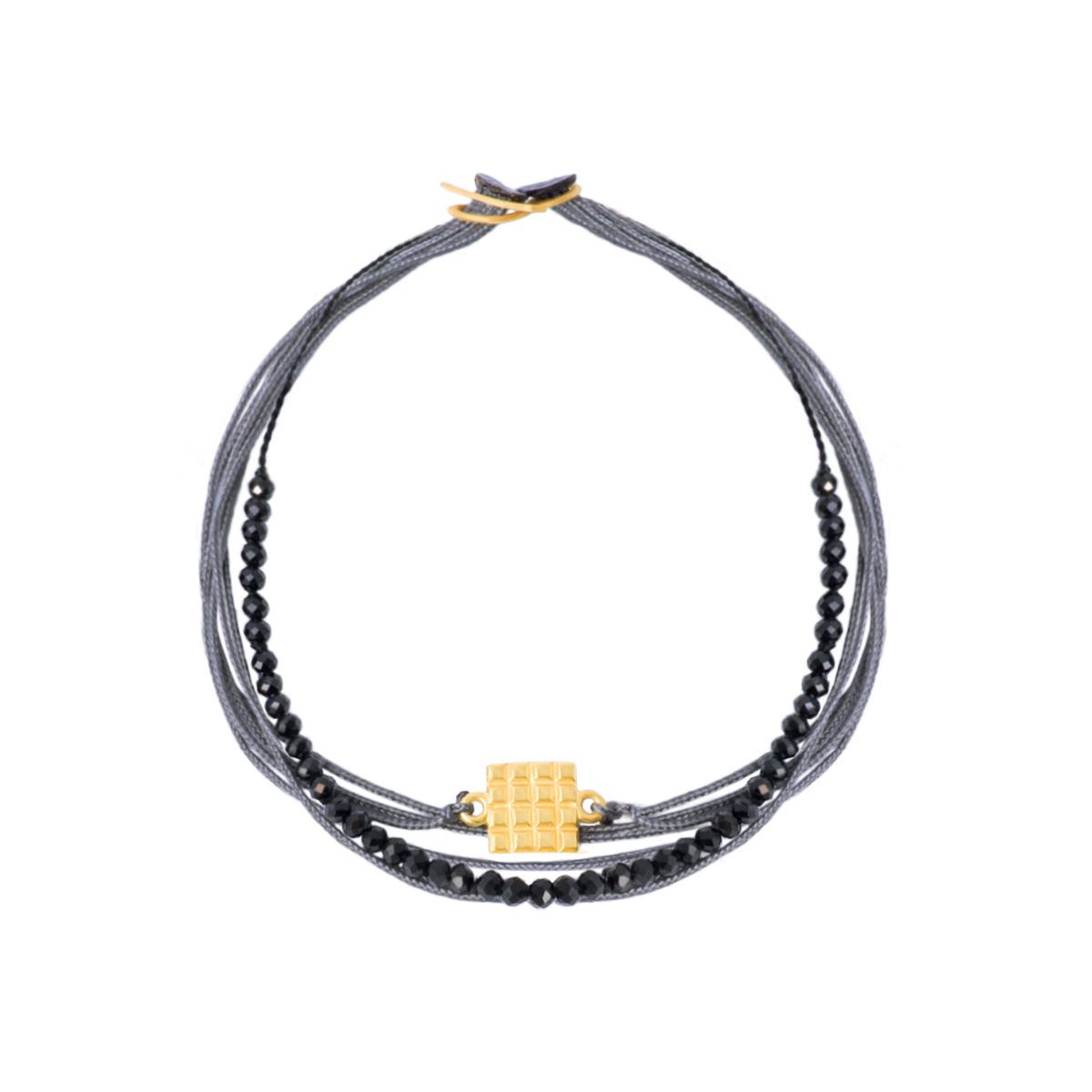 Βραχιόλι με μοτιφ , κούμπωμα σε κίτρινο χρυσό Κ14. Διαστάσεις μοτιφ.0,7*0,7cm . Σε σύνθεση με ορυκτές και νήματα