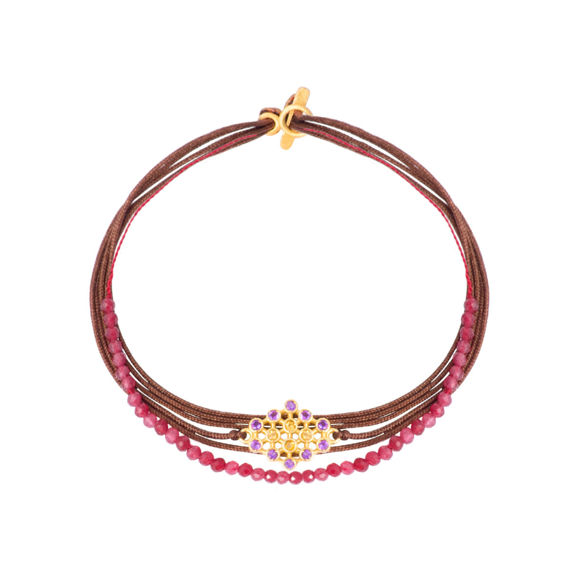 Βραχιόλι με μοτιφ , κούμπωμα σε κίτρινο χρυσό Κ14 και αμέθυστο- σιτριν. Διαστάσεις μοτιφ 1,4*1,1cm . Σε σύνθεση με ορυκτές και νήματα