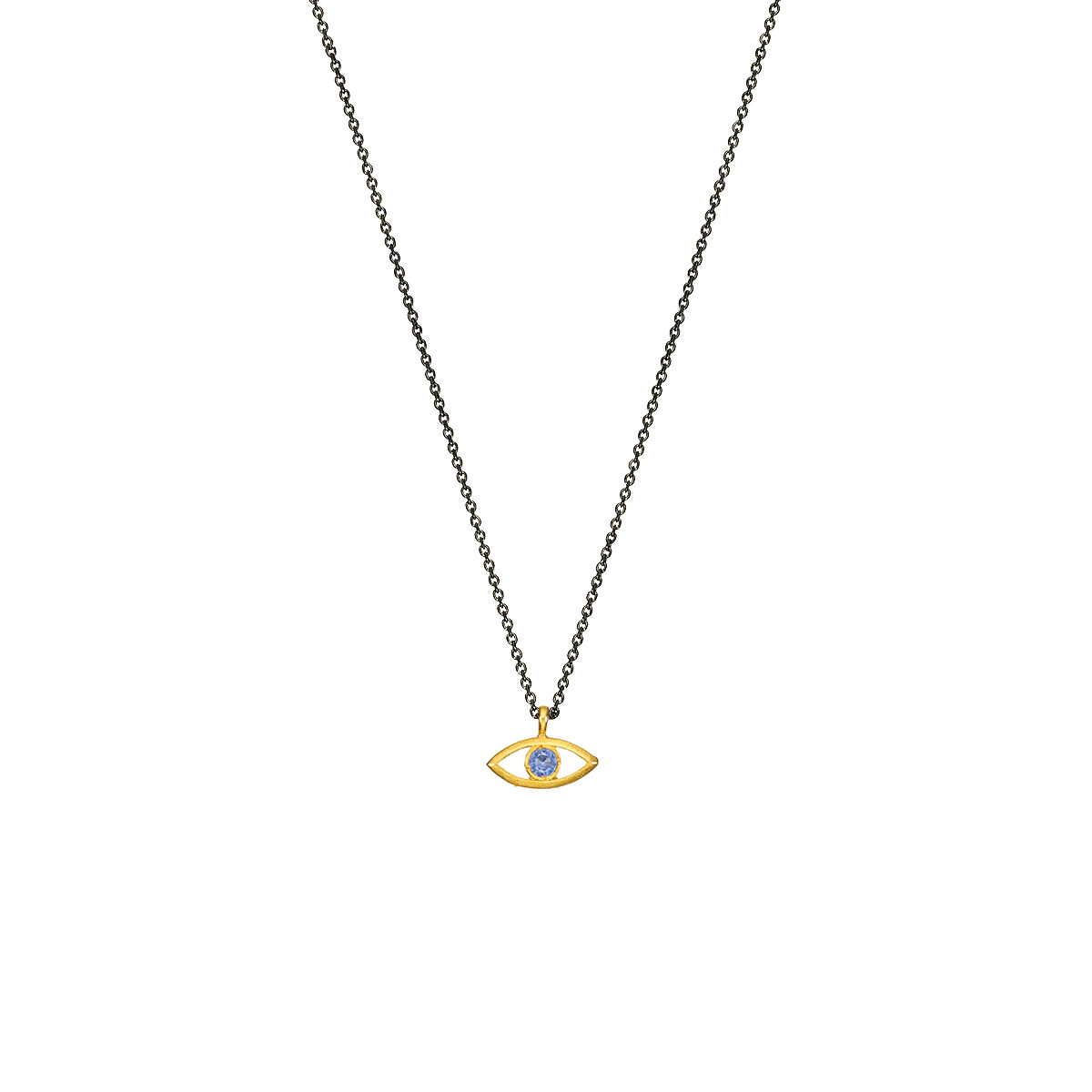 Pendant in yellow gold 14K with blue topaz. Pendant size 0,7*1,1cm with chain in silver 925 rhodium plated adjustable in 40 and 45cm