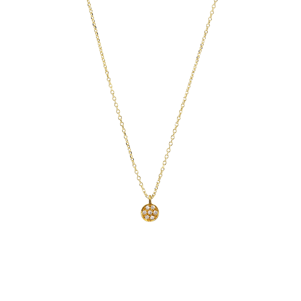 Pendant in yellow gold 14K with 0.063ct L.G.Diamond. Pendant size 0,6cm with chain in yellow gold 14K ,adjustable in 40 and 45cm