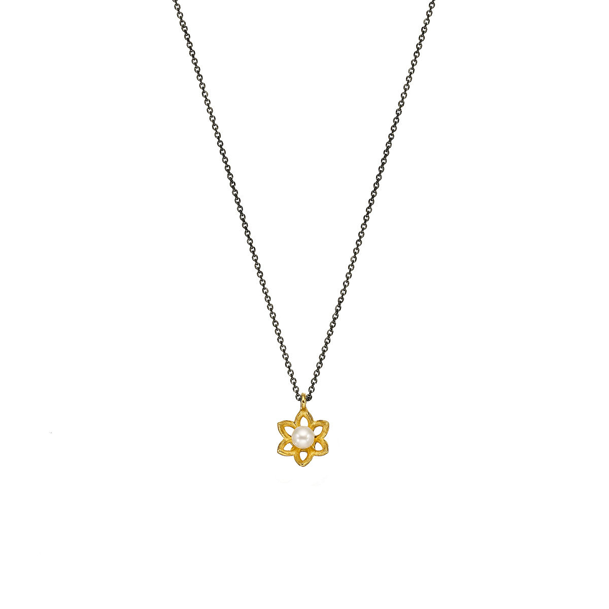 Pendant in yellow gold 14K with freshwater pearl . Pendant size 0,8cm with chain in silver 925 rhodium plated adjustable in 40 and 45cm