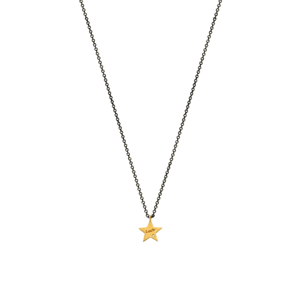 Pendant in yellow gold 14K with 0,004ct L.G.Diamond . Pendant size 1,2*1,1cm with chain in silver 925 rhodium plated adjustable in 40 and 45cm
