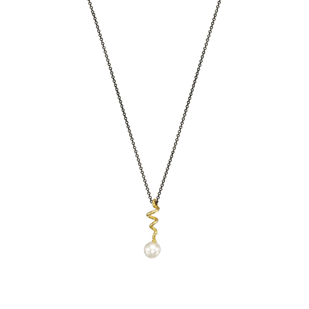 Pendant in yellow gold 14K with fresh water pearl. Pendant size 1,2*0,5cm with chain in silver 925 rhodium plated adjustable in 40 and 45cm