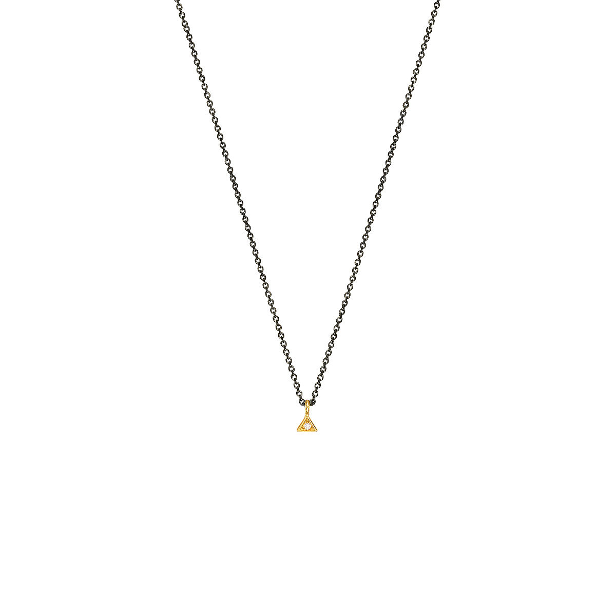 Pendant in yellow gold 14Kwith 0.004ct L.G.Diamond. Pendant size 0,35*0,25cm with chain in silver 925 rhodium plated adjustable in 40 and 45cm
