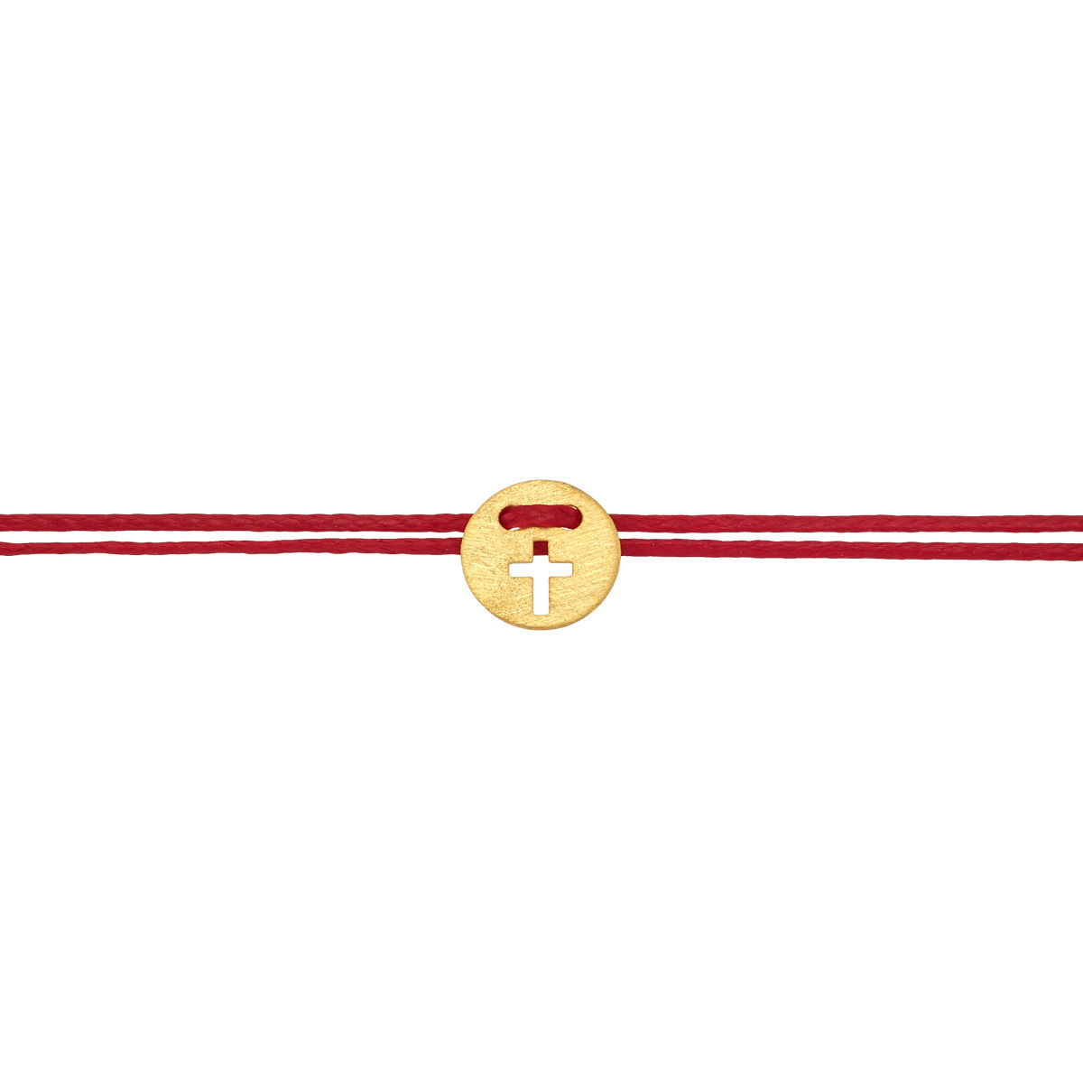 Bracelet with pendant in yellow gold 14K .Pendant size 0,9cm with red wax cord and red macrame
