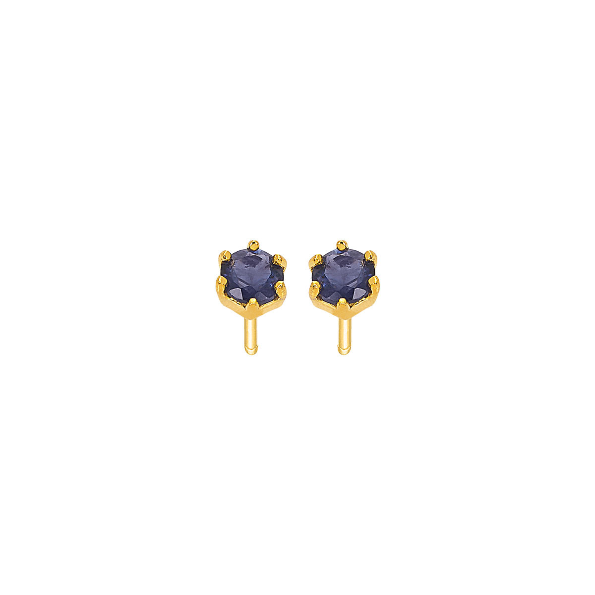 Earring in yellow gold 14K with iolite .Size 0,4cm