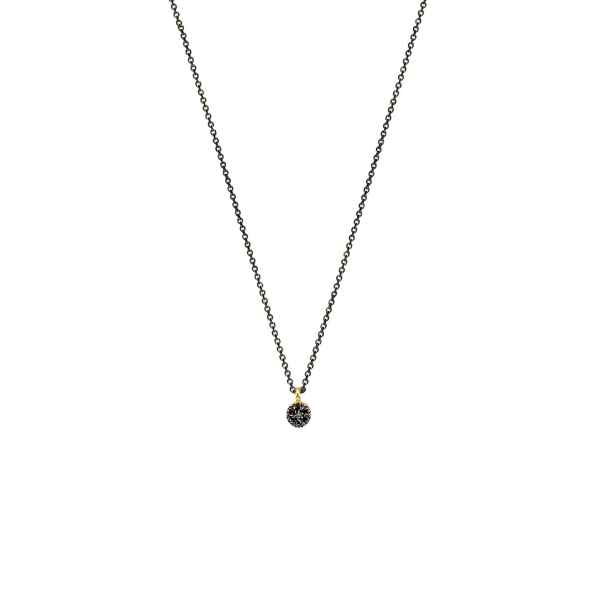 Pendant in yellow gold 14K-0,028ct black Diamond. Pendant size 1,2*1cm with chain in silver 925 rhodium plated adjustable in 40 and 45cm
