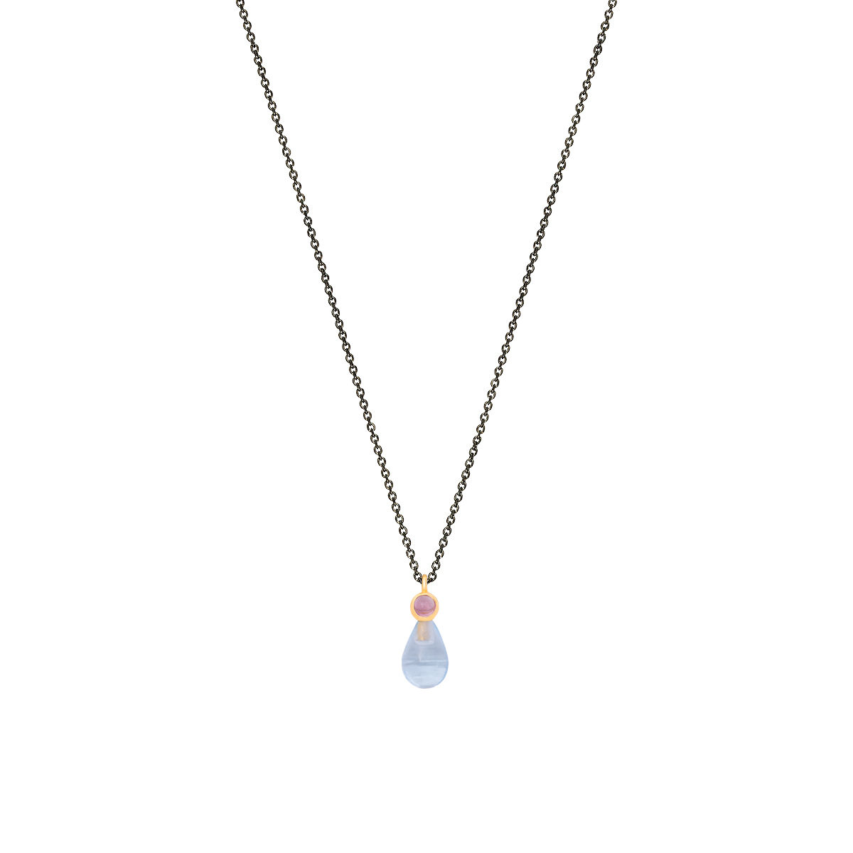 Pendant in yellow gold 14K with blue topaz and tourmaline . Pendant size 0.5*1.2cm with chain in silver 925 rhodium plated adjustable in 40 and 45cm.