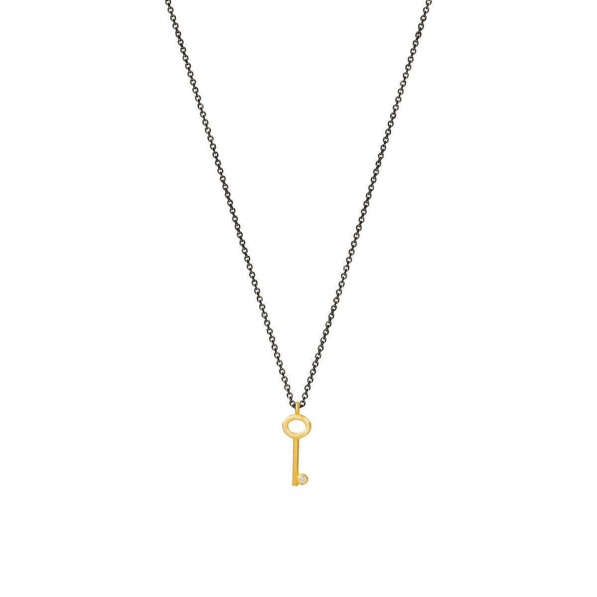 Pendant in yellow gold 14K with 0,09ct L.G.Diamond. Pendant size 1.4*0.4cm with chain in silver 925 rhodium plated adjustable in 40 and 45cm.