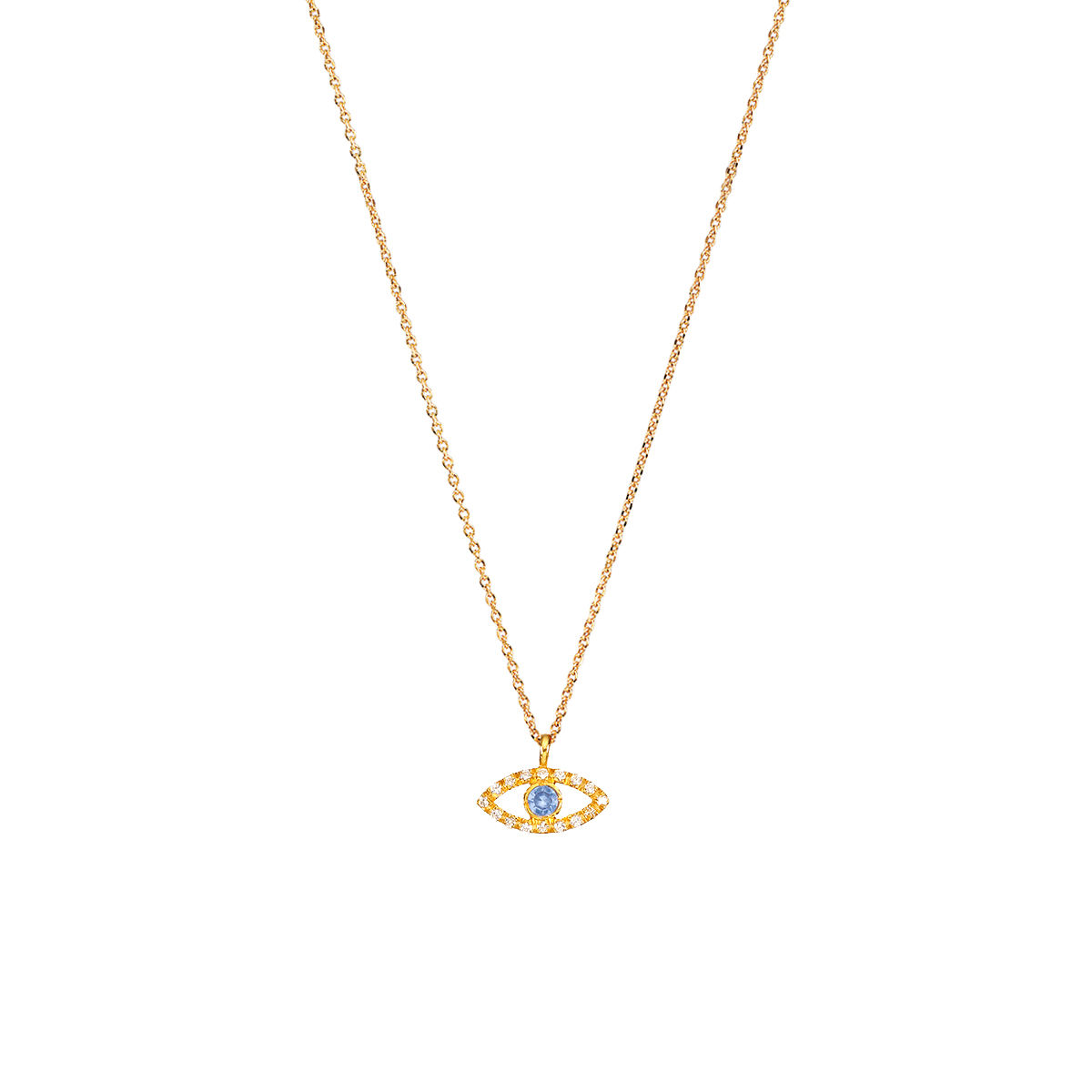 Pendant in yellow gold 14K with 0.064ct L.G.Diamond -blue topaz . Pendant size 0,8*1.1cm with chain in yellow gold 14K ,adjustable in 40 and 45cm
