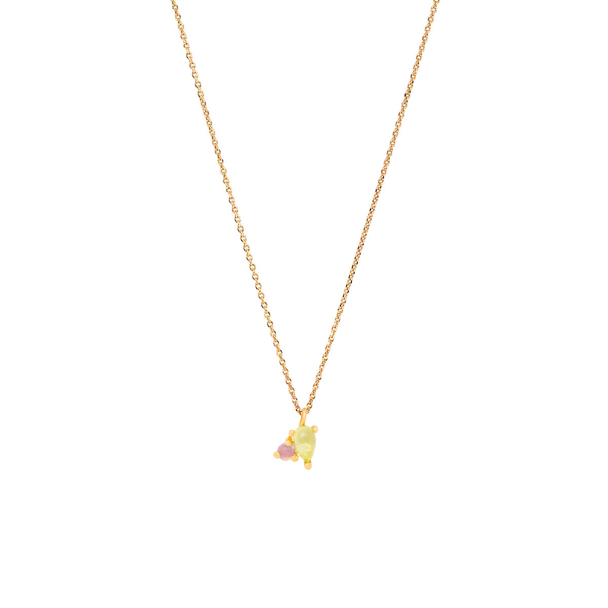 Pendant in yellow gold 14K with iolite-peridot. Pendant size 0,8*0.65cm with chain in yellow gold 14K ,adjustable in 40 and 45cm