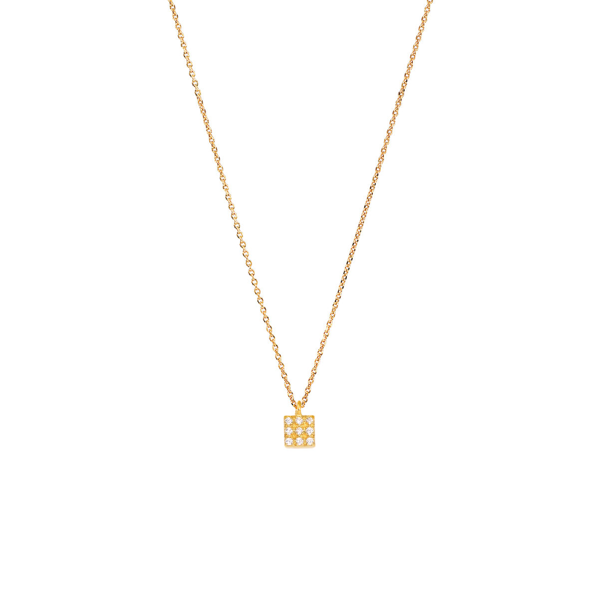 Pendant in yellow gold 14K with 0,036ct L.G.Diamond . Pendant size 0,65*0.4cm with chain in yellow gold 14K ,adjustable in 40 and 45cm