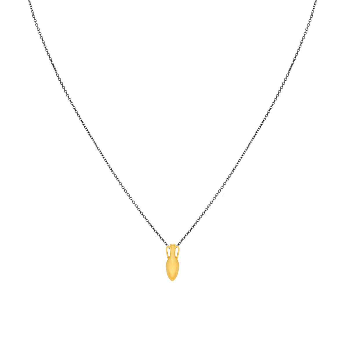 Pendant in yellow gold 14K . Pendant size 0.95*0.3cm with chain in silver 925 rhodium plated adjustable in 40 and 45cm.